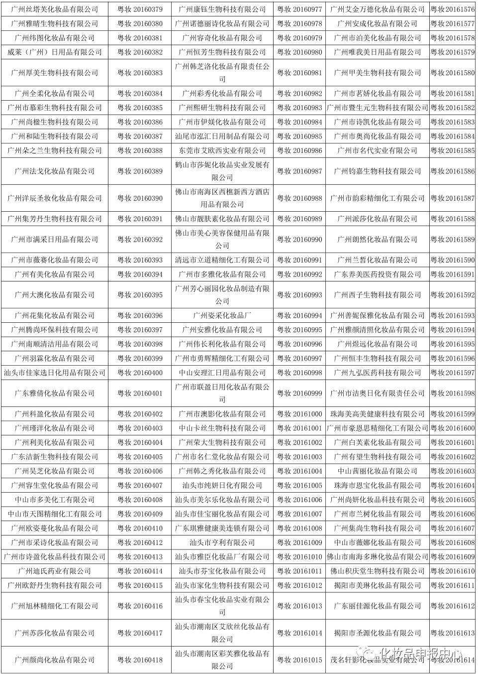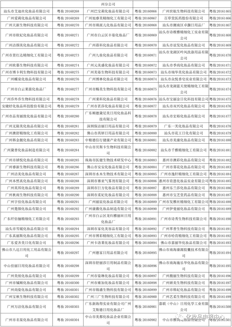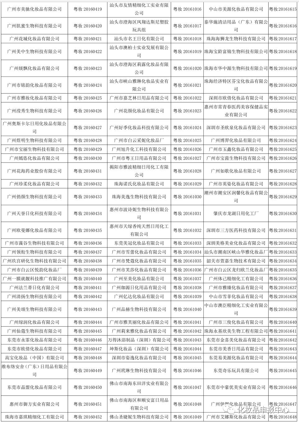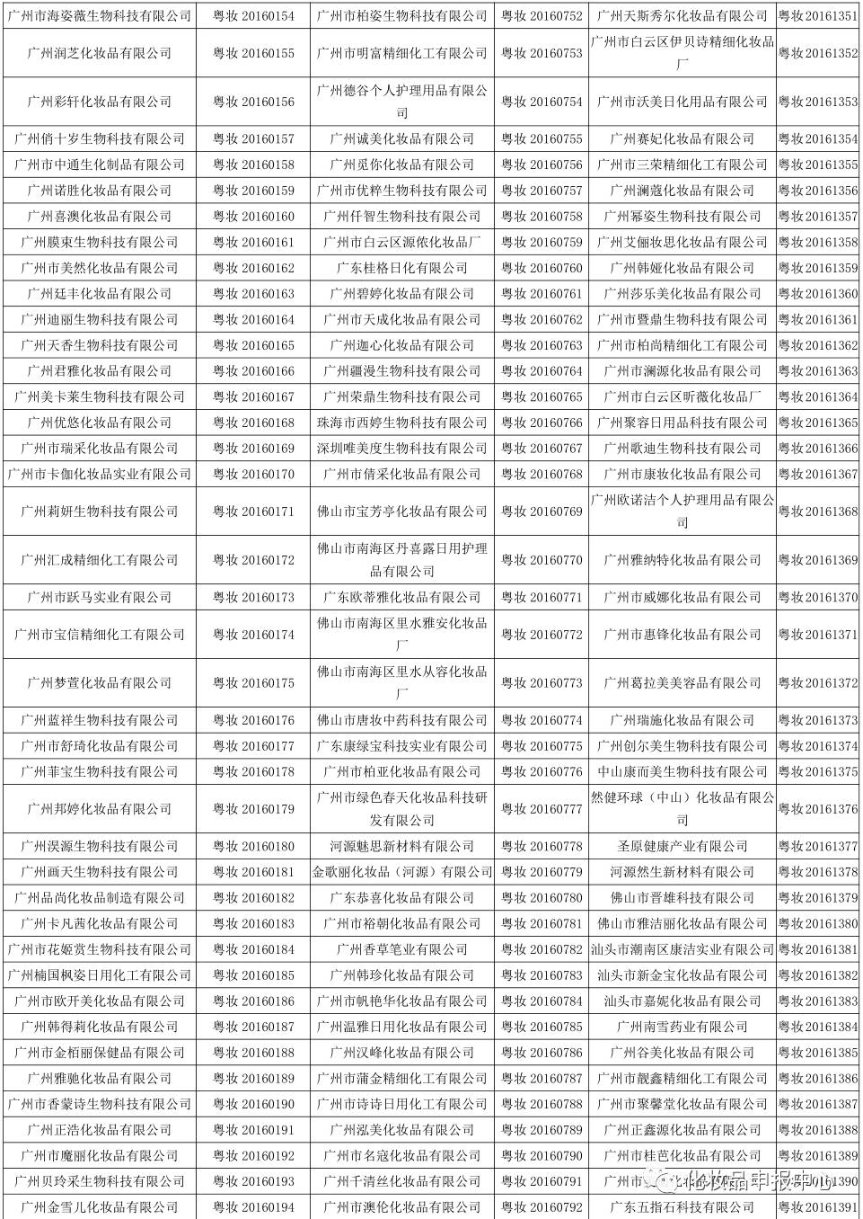 根據(jù)國家食品藥品監(jiān)督管理總局《關(guān)于化妝品生產(chǎn)許可有關(guān)事項(xiàng)的公告》的有關(guān)規(guī)定,2016年1月1日起,廣東省對化妝品生產(chǎn)企業(yè)發(fā)放《化妝品生產(chǎn)許可證》,以下為相關(guān)廠家明細(xì)。